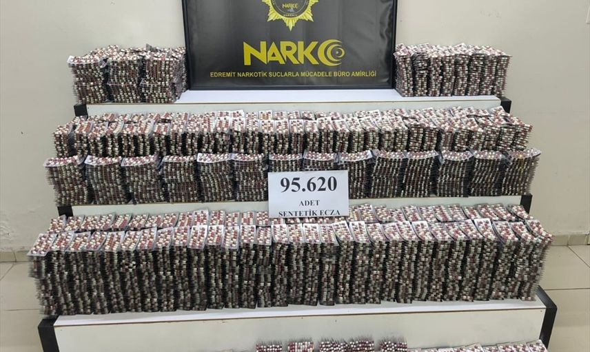 Balıkesir İl Emniyet Müdürlüğü Narkotik Suçlarla Mücadele Şubesi ve Edremit Narkotik Suçlarla Mücadele Büro Amirliği'ne bağlı ekipler, Burhaniye bölgesinde durumu şüpheli bir aracı durdurdu. Yüzlerce uyuşturucu hap ile dolu olan aracın içindeki hapların sayısı 95 bin 620 olarak belirlendi.