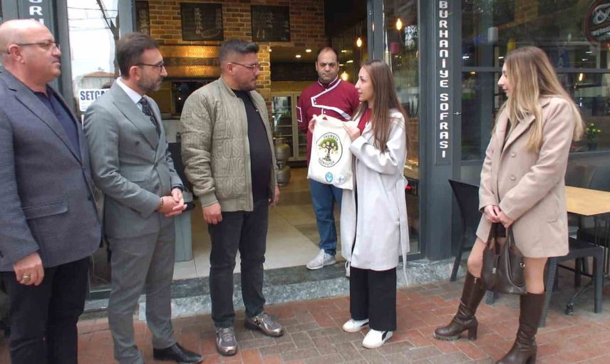 Öğrencilerin ürettiği reçel ve turşu kavanozları, caddedeki esnaflara dağıtılırken aynı zamanda sıfır atık hakkında bilgilendirme yapıldı. Hürriyet Caddesi'nde gerçekleşen etkinliğe, Uygulamalı Bilimler Fakültesi Dekanı Prof. Dr. Mehmet Oğuzhan İlban ile Burhaniye Ticaret Odası Başkanı Hasan Varol da katıldı.