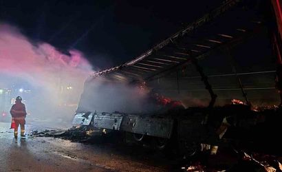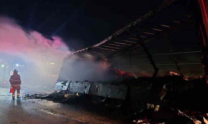 Balıkesir-Bandırma karayolu üzerinde seyir halindeki bir tırın dorsesinde yangın meydana geldi. Yangın, tırın karton yüküyle birlikte alev alması sonucu kısa sürede büyüdü.