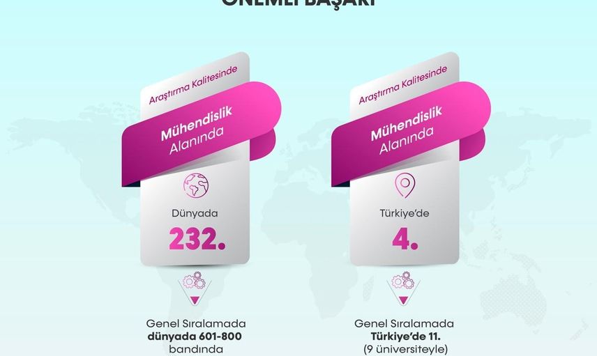 THE 2026 sıralamasında, Eğitim Çalışmaları alanında Türkiye genel sıralamasında 5 üniversite ile 8’inciliği, Mühendislik alanında ise 9 üniversiteyle 11’inciliği paylaştı. Eğitim Çalışmaları alanında Araştırma Kalitesi göstergesinde Türkiye’de birinci sırada yer aldı.