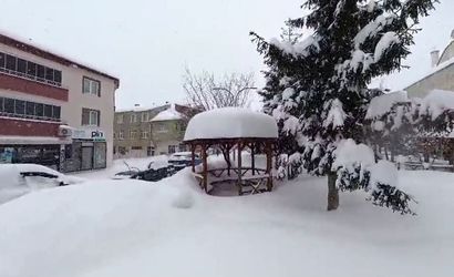 İlçe merkezinde günlerdir aralıksız sürdürülen kar yağışı, cadde ve sokakları beyaz bir örtüyle kaplayarak adeta bir kış manzarası oluşturdu. Park ve bahçelerdeki kamelyalar, yoğun kar yükü altında kalmış ve neredeyse tamamen kaybolmuş durumda.