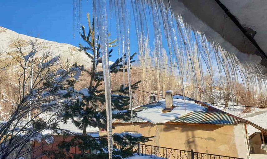 Van ilinin Başkale ilçesinde yaşanan aşırı soğuklar, bölgeyi adeta dondurdu. Ağaçlar, araçlar ve su birikintileri buz tutarken, çatılarda uzun buz sarkıtları oluştu.