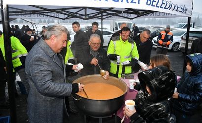 Namaz sonrası cami avlusunda vatandaşlarla sıcak çorba paylaşan Başkan Büyükkılıç, hemşehrileriyle samimi bir ortamda sohbet ederek taleplerini dinledi.