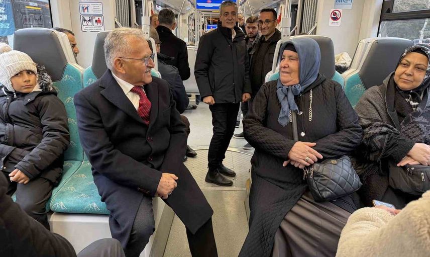 KAYSERİ BÜYÜKŞEHİR BELEDİYE BAŞKANI DR. MEMDUH BÜYÜKKILIÇ; RAYLI SİSTEM ARACI İLE SEYAHAT EDEREK HEMŞEHRİLERİ SOHBET ETTİ.