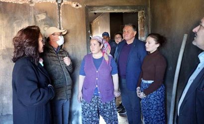 DENİZOVA MAHALLESİNDE YAŞANAN KONUT YANGININDAN SONRA HASAR GÖREN EVİ VE AİLEYİ MENTEŞE BELEDİYE BAŞKANI GONCA KÖKSAL ARAS ZİYARET ETTİ.