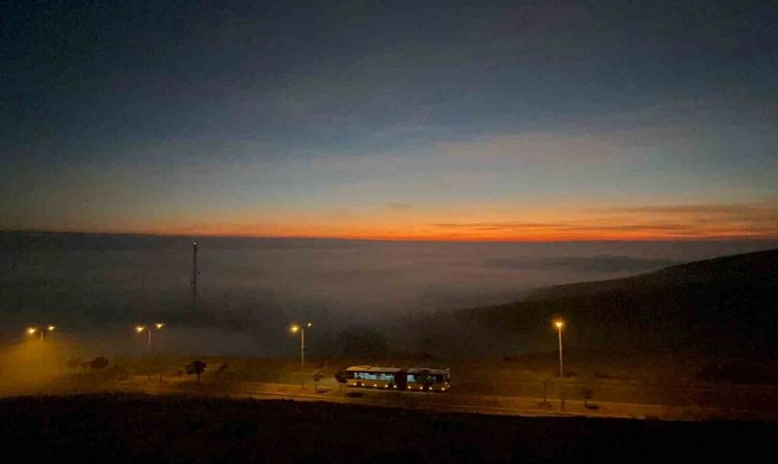 Batman’da etkili olan yoğun sis, gün batımının kızıllığıyla birleşerek şehrin üzerinde adeta bir sis denizi oluşturdu.