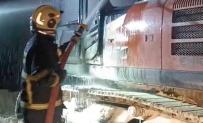 Batman’ın Oymataş köyü civarında park halindeki bir iş makinesi, henüz belirlenemeyen bir sebepten dolayı yangın çıkardı. Çevredeki vatandaşların durumu 112 Çağrı Merkezi’ne bildirmesiyle olay yerine intikal eden itfaiye ekipleri, alevleri kontrol altına alarak yangını söndürdü.