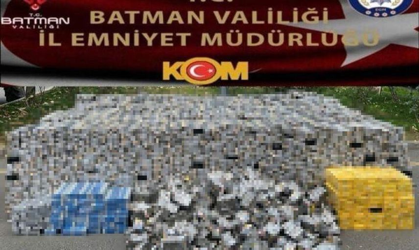 Batman İl Emniyet Müdürlüğü Kaçakçılık ve Organize Suçlarla Mücadele Şube Müdürlüğü'ne bağlı ekipler, Hasankeyf karayolu üzerinde şüpheli bir traktörü durdurdu. Traktörün arkasında bağlı olan su tankerinde yapılan detaylı arama sonucunda, binlerce kaçak sigara tespit edildi.