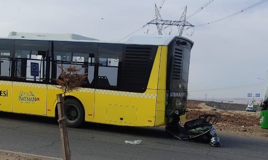 Batman'da, yolcu almak amacıyla yol kenarında duran bir belediye halk otobüsüne motosiklet çarptı. Kaza sonucunda motosiklet sürücüsü yaralandı.
