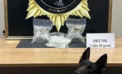 Bayburt-Erzurum kara yolunda seyahat eden bir yolcu otobüsü, düzenlenen kontroller sırasında durduruldu. Narkotik arama köpeği Pablo ile yapılan detaylı incelemede, S.B. adlı şahsın bavulunda toplam 1 kilo 20 gram skunk maddesi tespit edildi.