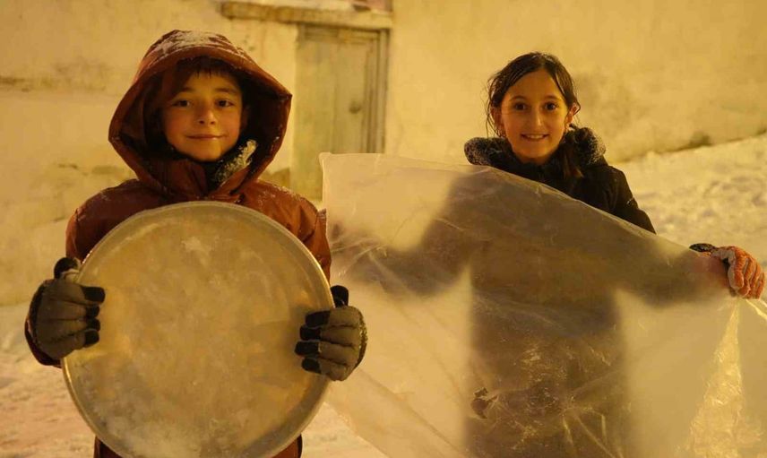 Okulların tatil edildiğini öğrenen Şingah Mahallesi’nin çocukları, karla dolup taşan dik yokuşlarda tepsi ve poşetlerle kayarak eğlencenin tadını çıkardılar. Soğuk havaya aldırış etmeden, neşeyle dolu anlar yaşadılar.