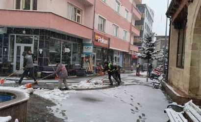 Belediye personelleri, ulaşımın aksamaması amacıyla hem iş makineleriyle hem de insan gücüyle sahada çalışmalarını yürütüyor. Kar temizleme araçları ana yollar üzerinde kar küreme ve tuzlama yaparken, temizlik personeli iş makinelerinin giremediği alanlarda, kaldırımlarda ve merdivenlerde kürek ve süpürgelerle yoğun bir mesai harcıyor.