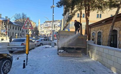 BAYBURT’TA BUZLU YOLLARA TUZ SERİLİYOR