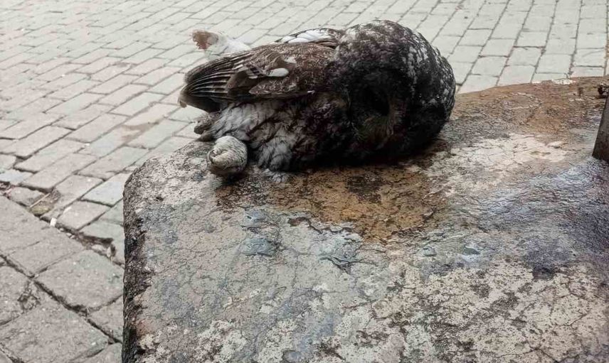 Germencik ilçesine bağlı Meşeli Mahallesi'nde, bir kahvehanenin camına çarpan baykuş, yere düştü ve hareketsiz kaldı. Gelen ses, mahalle muhtarı Bülent Yavuz'u harekete geçirdi. Muhtar Yavuz, baykuşu odunların arasında buldu.