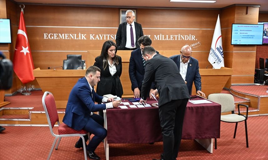 Bayrampaşa Belediye Meclisi'nde, Belediye Başkanı Hasan Mutlu'nun yolsuzluk soruşturması kapsamında tutuklanmasının ardından görevinden uzaklaştırılması dolayısıyla, Meclis 1. Başkanvekili İbrahim Kahraman başkanlığında belediye binasındaki meclis salonunda seçim yapıldı.