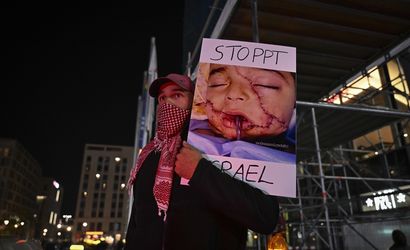 Protestocular, İsrail güçlerinin Küresel Sumud Filosu'na yönelik saldırılarını kınayarak, "Almanya finanse ediyor, İsrail bombalıyor" şeklinde sloganlar attılar.