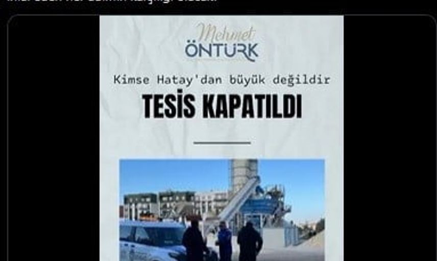 Hatay Büyükşehir Belediye Başkanı Mehmet Öntürk, sosyal medya üzerinden yaptığı açıklamada "Hiç kimse, Hatay'da verdiğimiz emeğin üzerine beton dökemez. Kuralları ihlal edenler gereken karşılığı bulacak" dedi.