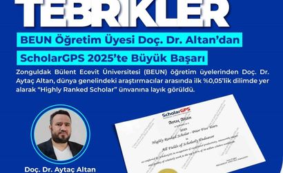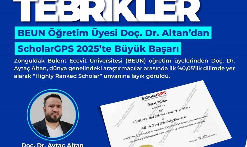 Uluslararası akademik performans ve etki analiz platformu ScholarGPS tarafından açıklanan 2025 Scholar Rankings sonuçlarına göre, Zonguldak Bülent Ecevit Üniversitesi (BEUN) bir uluslararası başarıya daha imza attı. BEUN'ün değerli öğretim üyelerinden Doç. Dr. Aytaç Altan, dünya genelindeki araştırmacılar arasında ilk %0,05’lik dilimde yer alarak "Highly Ranked Scholar" unvanına layık görüldü.