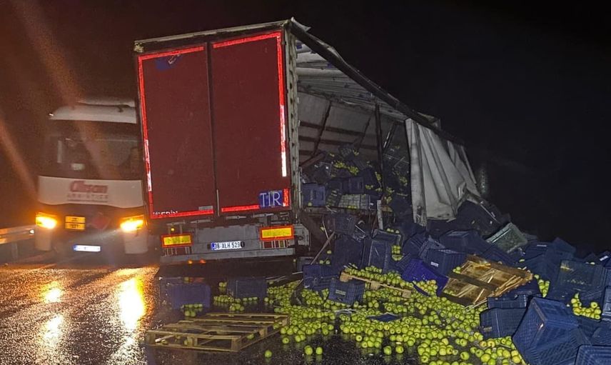 Kaza, Hüyük-Konya kara yolu üzerinde gerçekleşti. 43 yaşındaki O.T. yönetimindeki 38 JM 630 plakalı meyve yüklü tır, yağışlı hava nedeniyle kontrolünü kaybederek bariyerlere çarptı. Çarpmanın etkisiyle tırın dorsesindeki elmalar yola saçıldı.