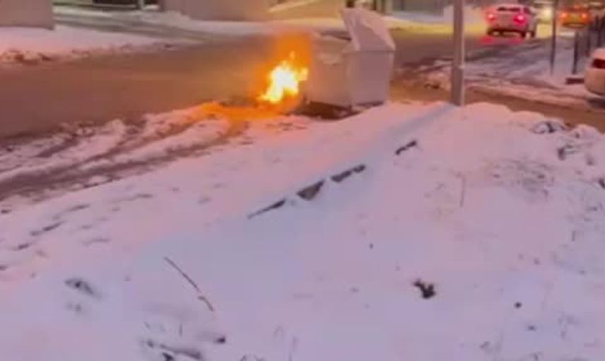 ÇÖP KONTEYNIRI YANINA BIRAKILAN EŞYALAR ALEV ALDI