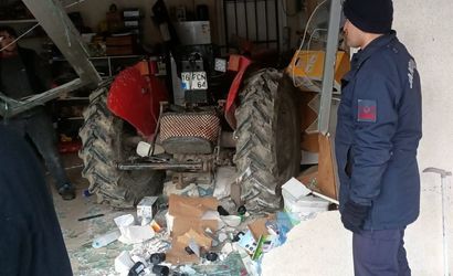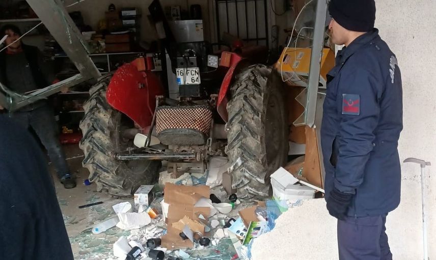 Kontrolden çıkan traktör, temizlik malzemeleri satan bir iş yerinin ön camından içeri daldı. Neyse ki, kazada hem traktör sürücüsü hem de iş yerindekiler yaralanmadan kurtuldu.