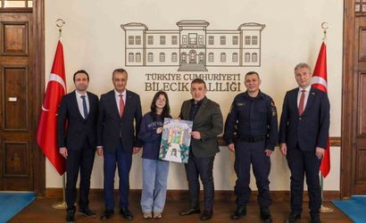 Bilecik’te gerçekleştirilen ‘Bilinçli Tüketici Olmak’ konulu resim yarışmasında il birincisi olarak öne çıkan Aysima Kurum, Bilecik Valisi Faik Oktay Sözer tarafından makamında ağırlandı.