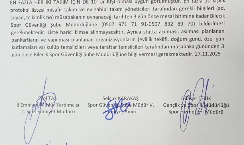 Kulüp başkanları, bu kararın İl Spor Güvenlik Kurulu tarafından alınmadığını belirterek itirazda bulundu. 27 Kasım’da, Emniyet Müdür Yardımcısı Erol Taş’ın imzasını taşıyan belgede, ilimizdeki futbol müsabakalarında 1 Ekim 2025 tarihli İl Spor Güvenlik Kurulu Kararları doğrultusunda alınan misafir seyirci yasağına yer verildi.
