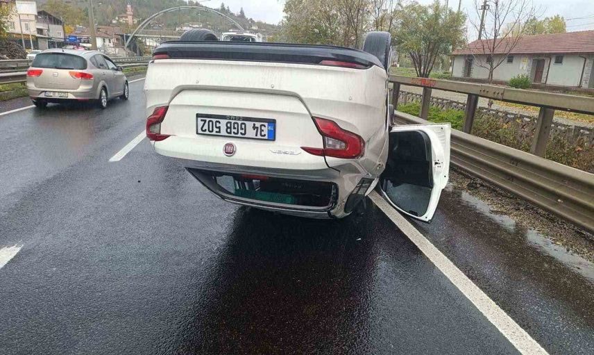 Bilecik’in Pazaryeri ilçesinde, direksiyon hakimiyetini kaybeden bir sürücü, aracının takla atmasına neden oldu.