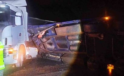 BİLECİK’TE TIR DEVRİLDİ YOL ULAŞIMA KAPANDI