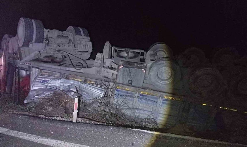 SEYİR HALİNDEKİ TIR DEVRİLDİ; 3 YARALI
