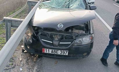 Bilecik-Osmaneli-Sakarya karayolunda Selimiye Köyü mevkiinde yaşanan kazada, 11 ABE 397 plakalı otomobilin sürücüsü İzzet Ç. (23), direksiyon kontrolünü kaybetti. Kontrolden çıkan araç, bariyerlere çarparak durabildi.