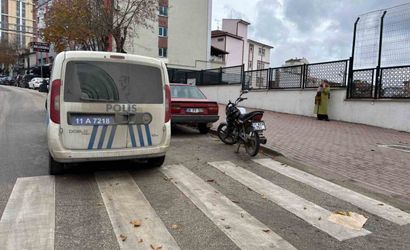 Bilecik’te meydana gelen bir trafik kazasında, yaya geçidinden geçmek isteyen bir yayaya yol veren hafif ticari araca arkadan motosiklet çarptı.