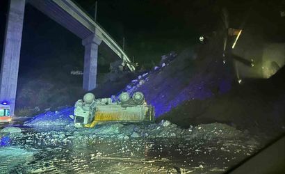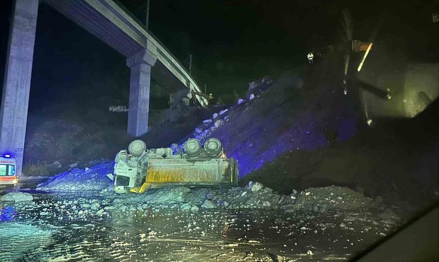 Bilecik’te Yüksek Hızlı Tren (YHT) şantiyesinde gerçekleşen kazada, 15 metre yükseklikten devrilerek kontrolden çıkan bir kamyon, sürücüsünün ağır yaralanmasına neden oldu.
