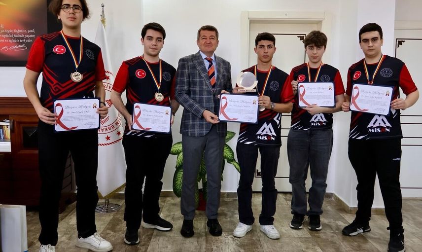 Bilecik İl Milli Eğitim Müdürü Serdal Şimşek, ROBOCHALLENGE-25 yarışmasında dünya üçüncülüğü kazanan Bozüyük Mimar Sinan Mesleki ve Teknik Anadolu Lisesi'nin öğrenci ve öğretmenlerini makamında kabul etti.