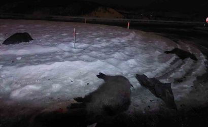 Bingöl-Muş karayolunda meydana gelen kazada, bir otomobil domuz sürüsüne çarptı ve bu faciada 3 kişi yaralandı.