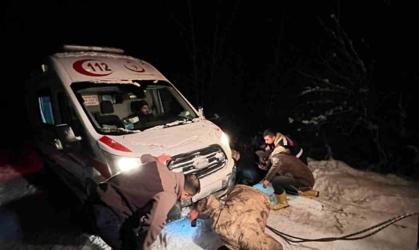Edinilen bilgilere göre, Güneşlik köyünde hasta almaya çıkan ambulans, dün gece saatlerinde yoğun kar yağışı ve tipi nedeniyle yolda mahsur kaldı. Bu durum üzerine Bingöl İl Özel İdaresi Yol ve Ulaşım Hizmetleri Müdürlüğü’ne bağlı ekipler ve jandarma ekipleri hızla bölgeye sevk edildi.