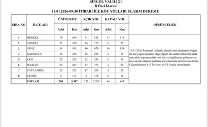 Kar yağışı nedeniyle birçok köy yolu kapanmıştı. Bu duruma karşı İl Özel İdaresi, 110 personel ve 53 araçla etkili bir şekilde müdahalelerde bulunuyor. Yürütülen çalışmalar sonucunda 280 köy yolundan 232’sinin ulaşıma açılması sağlandı. Geri kalan 48 köy yolunda ise ekiplerin çalışmaları sürdürmeye devam ettiği bildirildi.