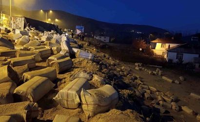 Bingöl'de bir saman yüklü kamyonun devrilmesi sonucu maddi hasar meydana geldi.