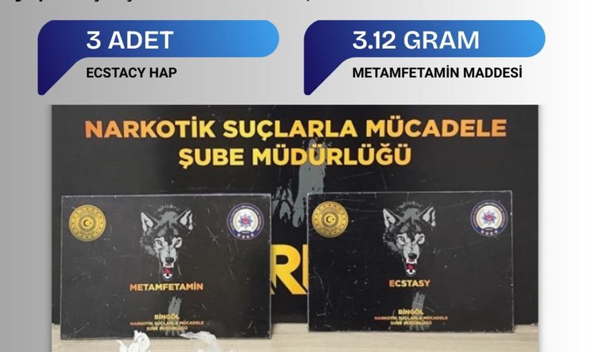 İl genelinde gerçekleştirilen çalışmalar sonucunda, 3 adet ecstasy hap ile 3,12 gram metamfetamin maddesi ele geçirildi.