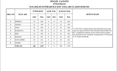 Bingöl’de dün gece başlayan ve henüz etkisini sürdüren yoğun kar yağışı, il genelinde ulaşımda ciddi aksamalara yol açtı. 280 köy yolunun tamamen kapandığı bildirilirken, açık köy yolu bulunmamaktadır.