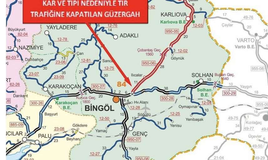 Bingöl Valiliği'nden yapılan açıklamada, "Bingöl-Erzurum Devlet Yolunun 0-88 km’leri (Kervansaray kavşağı ile Bingöl-Erzurum il sınırı arası) saat 15:55 itibarıyla tır trafiğine kapatılmıştır." denildi. Yol Güvenliği Öncelik