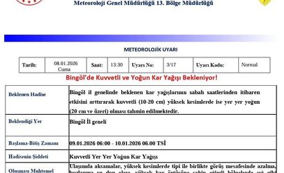 Meteoroloji 13. Bölge Müdürlüğü, Bingöl'de beklenen yoğun kar yağışı hakkında önemli bir duyuru yaptı.