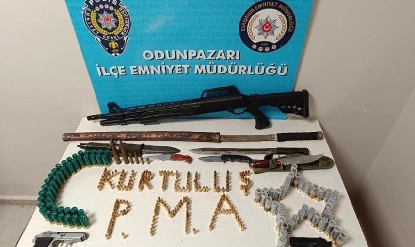 Odunpazarı İlçe Emniyet Müdürlüğü Kurtuluş Polis Merkezi Amirliği ekipleri, olayla ilgili geniş çaplı bir araştırma yürüttü. Elde edilen bilgiler doğrultusunda, tehditte bulunan şahıs yakalandı. Yapılan arama sonucunda, şahsın iş yerinde oldukça fazla sayıda silah ve mühimmat bulundu. Ele Geçirilenler: