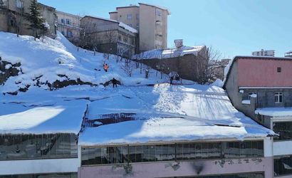 Bitlis’te etkili olan yoğun kar yağışı ve soğuk hava, çatılarda biriken karların temizlenmesini zorunlu hale getirdi.