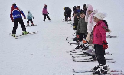 Bitlis’te karne tatilini değerlendiren çocuklar, kayak merkezinde uzman eğitmenler eşliğinde kayak eğitimi alıyor.