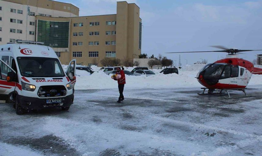 Bitlis'in Akçalı köyü Tabanözü Mezrası'nda yoğun kar yağışı nedeniyle yolu kapanan bölgede, rahatsızlanan bir anne ile yeni doğan bebeği için Sağlık Bakanlığı tarafından hava ambulansı devreye alındı.