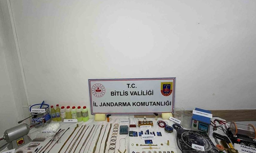 Bitlis'te İl Jandarma Komutanlığı Kaçakçılık ve Organize Suçlarla Mücadele Şubesi tarafından gerçekleştirilen operasyon sonucunda, sahte altın imalatı ve satışı yapan 2 kişi tutuklandı.