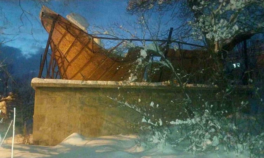 Hacıyusuflar Sokak'ta bulunan ve Yıldırım Sayınta'ya ait olduğu belirtilen evde, çatının taşıyıcı unsurları tonlarca karın baskısıyla ikiye bölünerek yıkılmıştır. Olayda can kaybı ve yaralanma olmaması teselli kaynağı olmuştur, fakat evde kapsamlı bir maddi hasar meydana gelmiştir.
