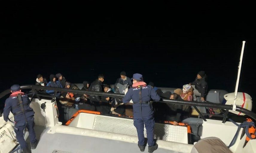 Muğla’nın Bodrum ilçesi açıklarında bir motor arızası nedeniyle sürüklenen teknedeki 31 düzensiz göçmen kurtarıldı.