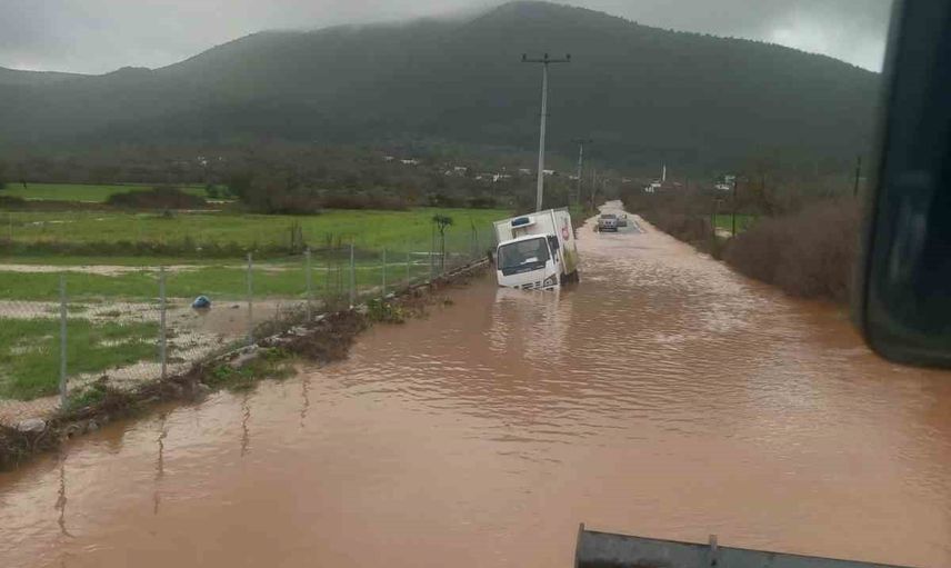 Bodrum’da sabah saatleri itibarıyla etkili olan yağmur, özellikle Mumcular-Etrim ile Pınarlıbelen güzergahında zaman zaman şiddetini artırdı. Bu yoğun yağış, Pınarlıbelen-Etrim yolunda su birikintilerine sebep oldu. Sağanak nedeniyle bir kamyonet yolda mahsur kaldı. Durumu fark eden belediye ekipleri, kepçe yardımıyla hızla bölgeye intikal etti ve sürücüyü güvenli bir şekilde araçtan çıkardı.